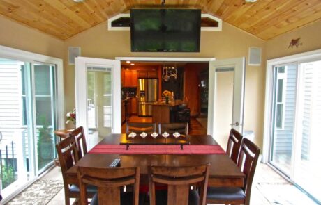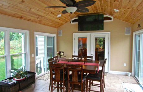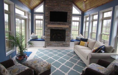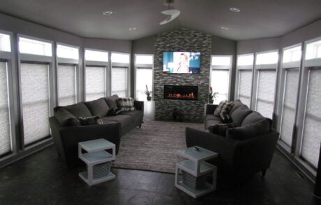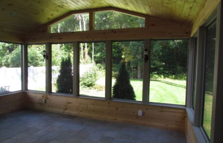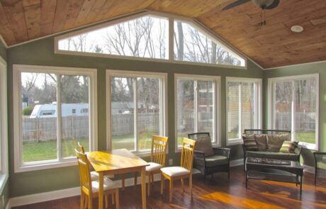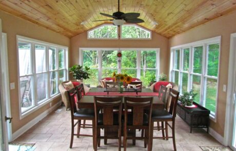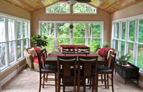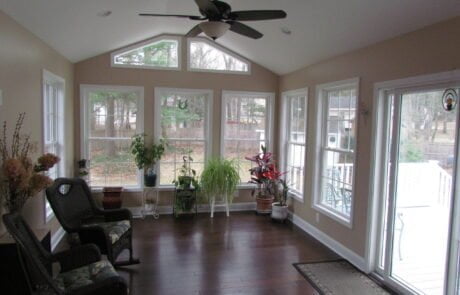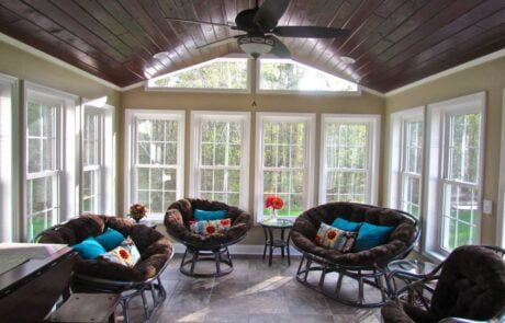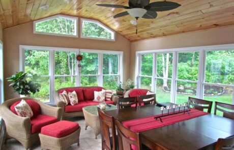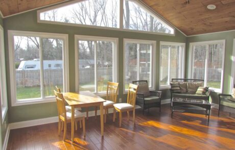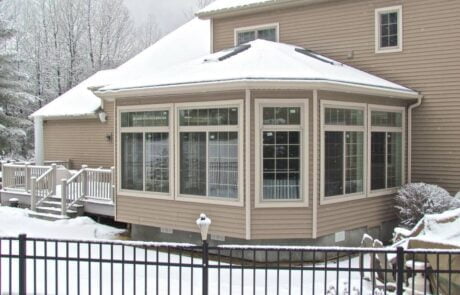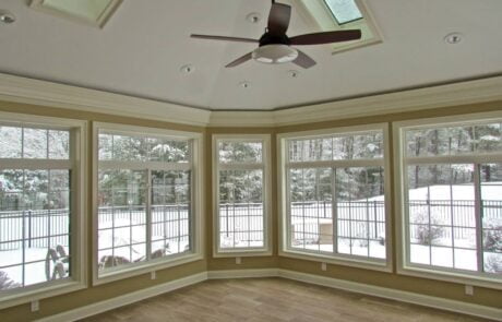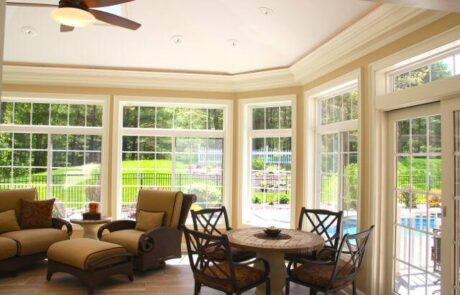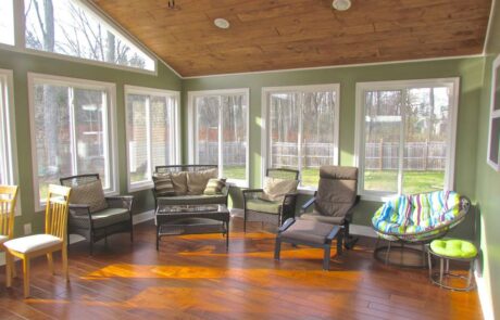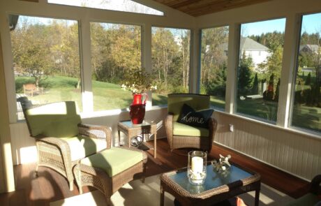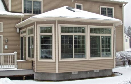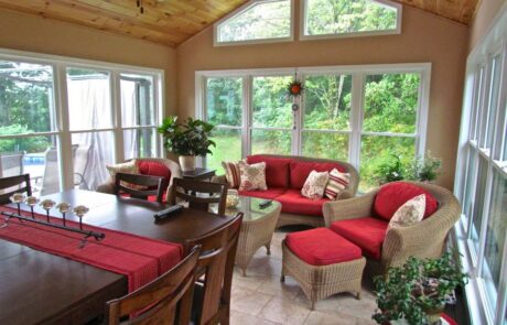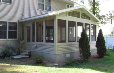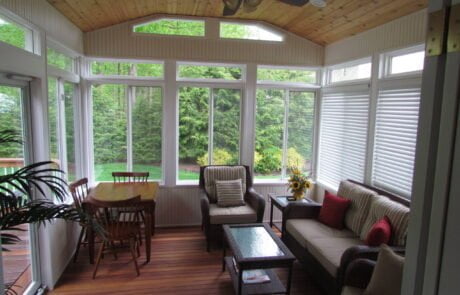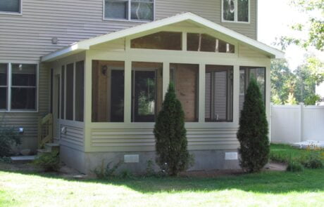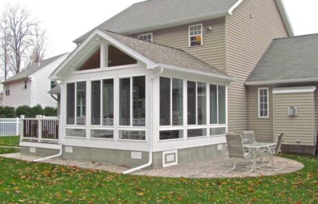 A sunroom is typically warmer than a screen room. The window glass of a sunroom actually intensifies the suns rays to heat the room further. Here in the capital region this feature is greatly appreciated. As it extends your rooms useful days well into the winter months. During the summer months, opening a screened window provides a cool breeze and further exposure to the outdoor elements. If you’re looking for a more temperature controlled environment you may want to consider our heating and air-conditioning package.